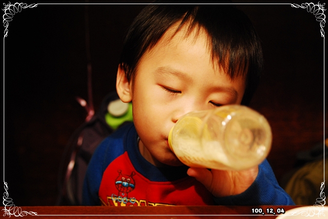 兒子的胃口好,吃完燒肉後,又討了奶喝,但他已經呈現愛睏的模樣。